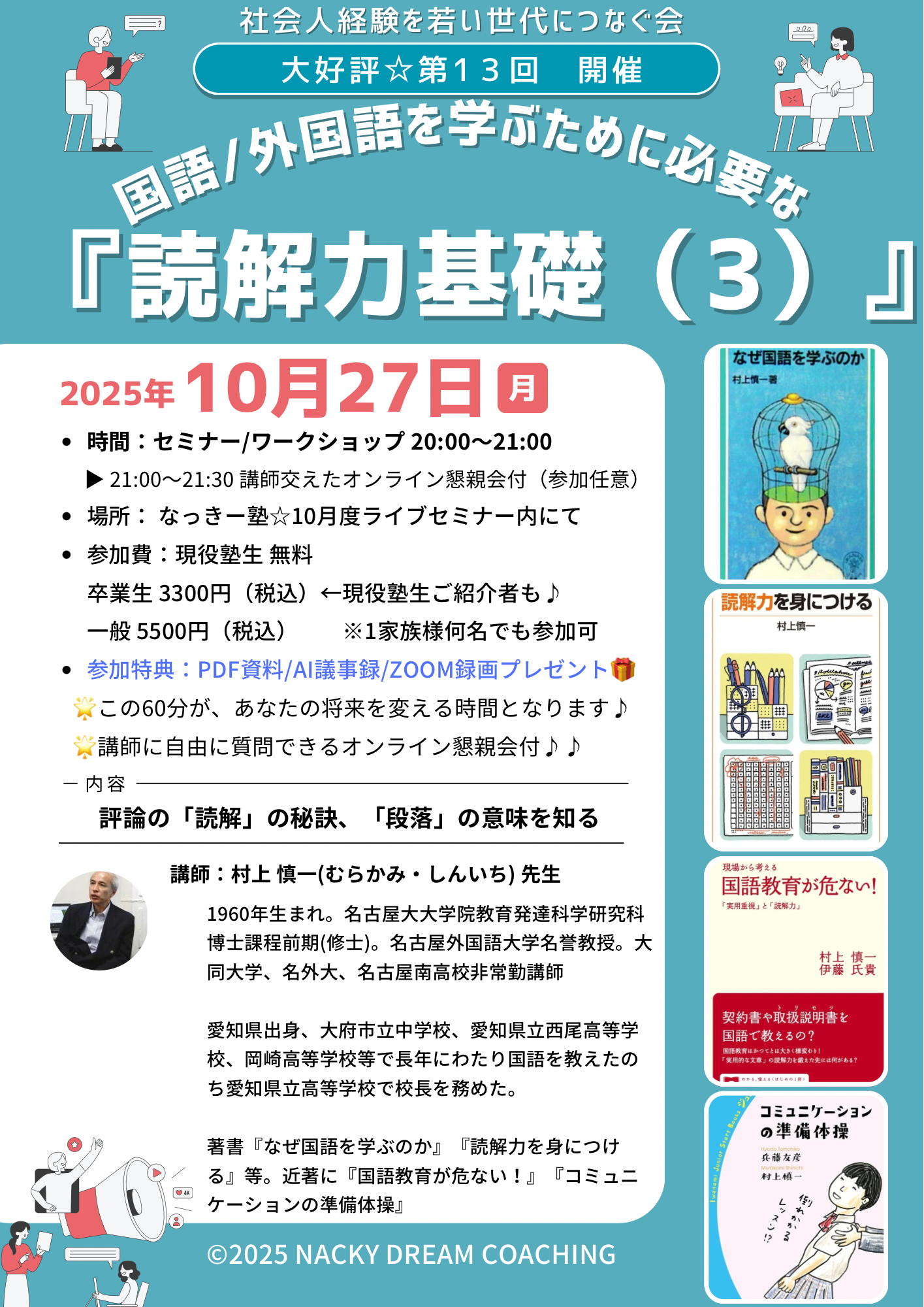 - 2025/10/27第13回特別記念講演のお知らせ📝村上名誉教授読解力基礎(3)