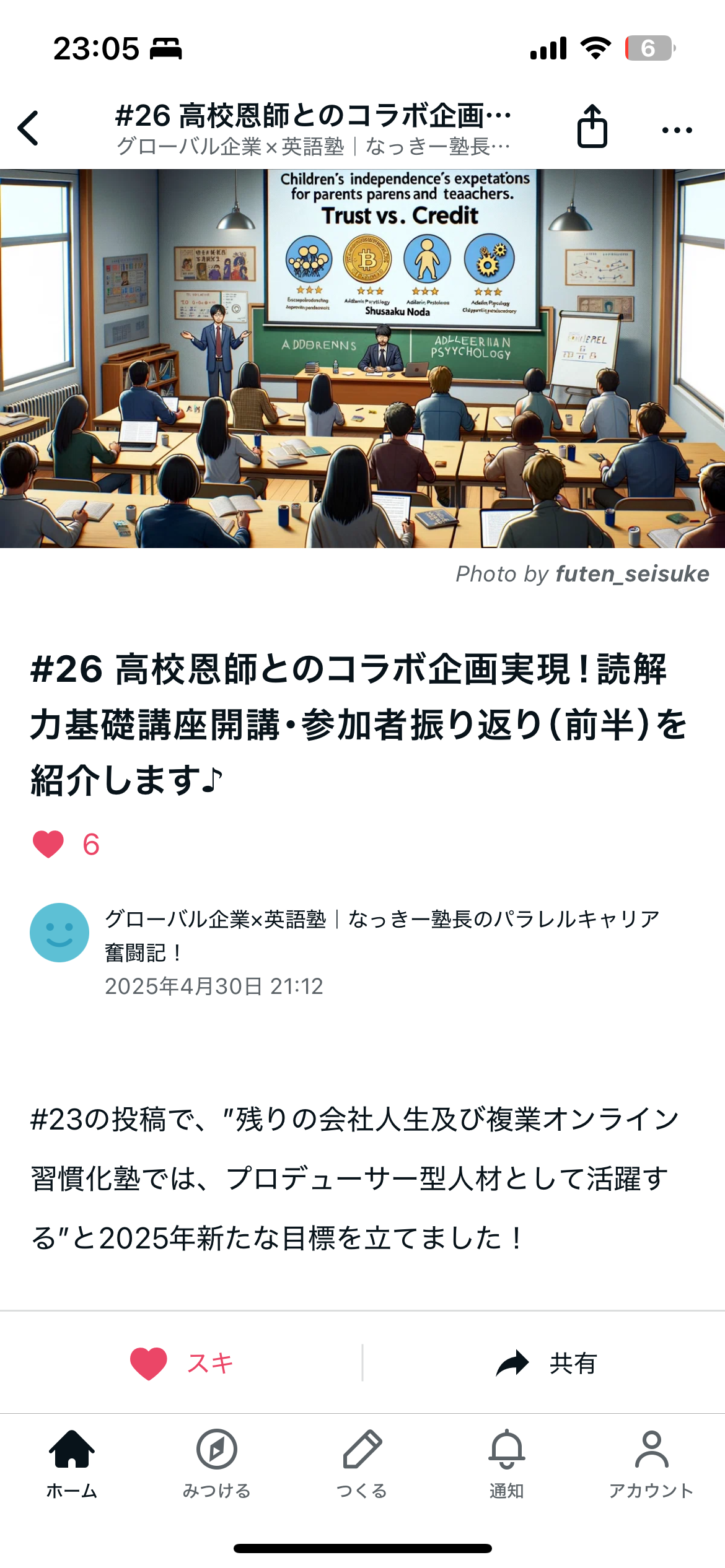 2025/4/30 noteブログ更新しました!#26高校恩師とのコラボ企画「読解力基礎」開催報告(その1) セミナー開催 2025.04.30 #26 高校恩師とのコラボ企画実現!「読解力基礎講座(1)」2025/4/14開催報告/参加者振り返り♪|グローバル企業×英語塾|なっきー塾長のパラレルキャリア奮闘記!#23の投稿で、”残りの会社人生及び複業オンライン習慣化塾では、プロデューサー型人材として活躍する”と2025年新たな目標を立てました! 最近の私の仕事に対する想いは、上記#23投稿を読んで頂けると嬉しいです♪ #23投稿最後で触れた「高校...