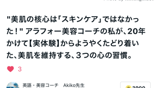 美容コーチング 2025/4/30Akiko先生noteブログ更新!#9アラフォー美容コーチが実体験からたどり着いた3つの心の習慣。